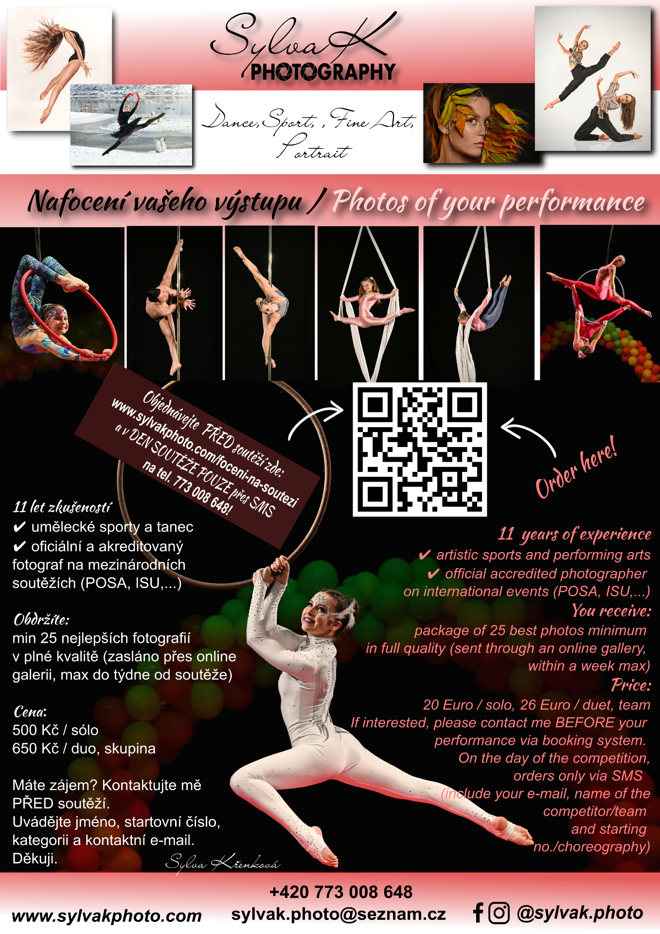 Nová kategorie: Aerial a Pole pro děti ve věku 0-5 let. hudba 2-2:30 minuty.Uzávěrka byla posunuta až do 10.12.2025.